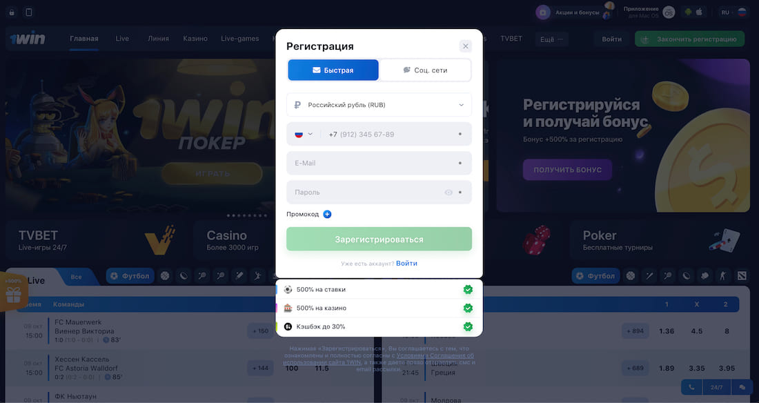 Одной из причин популярности данной БК считается ее бонусная политика. Все новые клиенты 1вин имеют возможность получить бонус когда хотят впервый раз зарегистрировать аккаунт и ввести промокод. Это комбинация символов, при указании которой игрок получает бесплатную ставку – фрибет. Данное поощрение необходимо использовать в соответствии с условиями бонусной программы. В противном случае отыгрыш бонуса не будет засчитан, и игрок не сможет перевести бонусные средства на реальный счет.